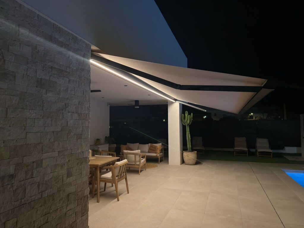 Aplicable a cualquier toldo o persiana, con la opción de instalar sensores de viento, sol, lluvia y movimiento. También es posible incorporar un kit de luces LED.